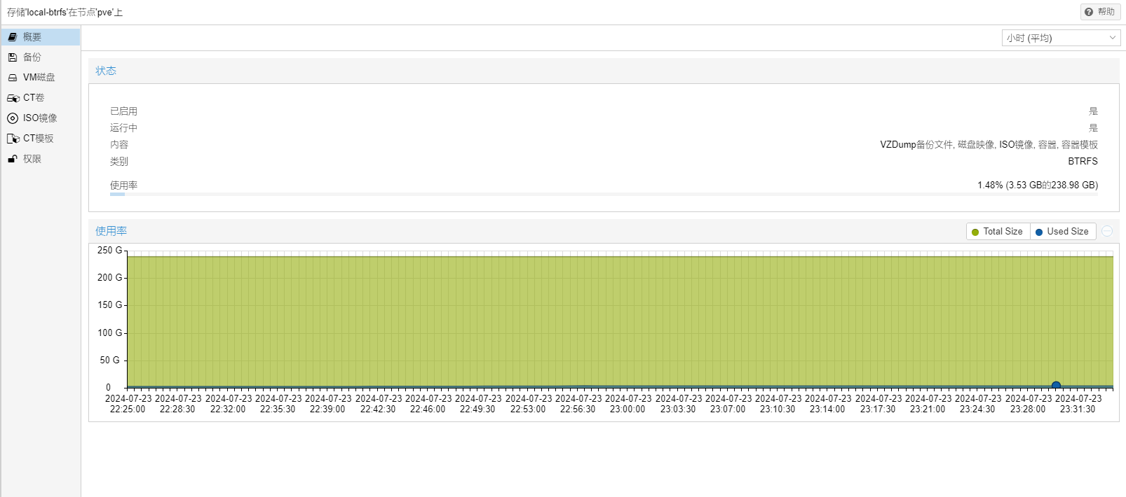 Btrfs 文件系统创建的 PVE 很干净,只有一个 local-btrfs 存储